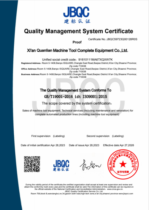 我们成套全(quan)面通過質量(liàng)管理體系認(rèn)證證書