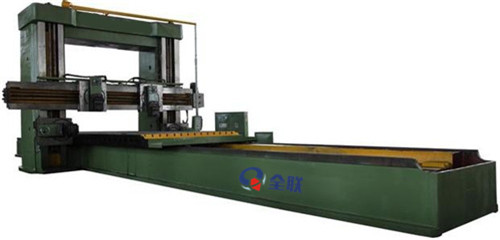 該龍門刨(páo)床主要包括床身(shēn)、工作台、兩個立柱(zhù)、邊接梁、頂蓋、橫梁(liang)、托闆、銑削頭以及(ji)工作台的進給結(jié)構、橫梁的升降機(ji)構、橫梁🆚托闆的橫(héng)進給結構、側銑頭(tóu)垂直升降機構、橫(héng)梁鎖緊機構、潤滑(huá)系統等幾個部分(fen)所組成。
